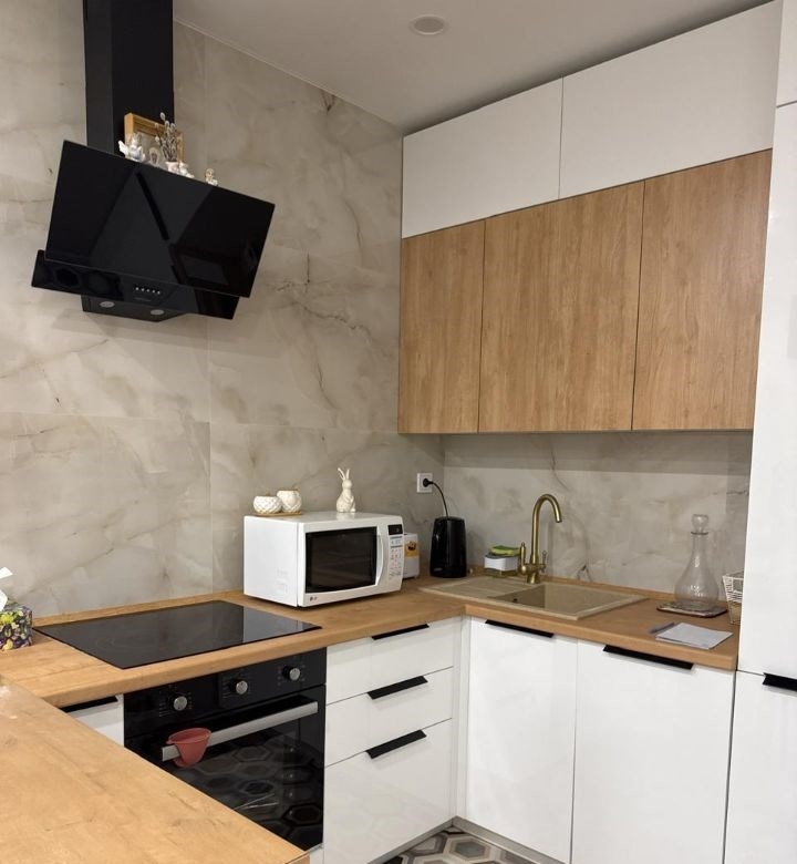 уютная светлая евро двушка , с красивым ремонтом делали для себя . жк класса комфорт . дверь в квартиру открывается с помощью пароля или отпечатка пальца , также можно пользоваться и ключами . двери в доме открываются автоматически . потрясающий двор с детской площадкой . в жк всего два дома и два подъезда , тихо и безопасно . также есть парковочное место на многоуровневой парковке