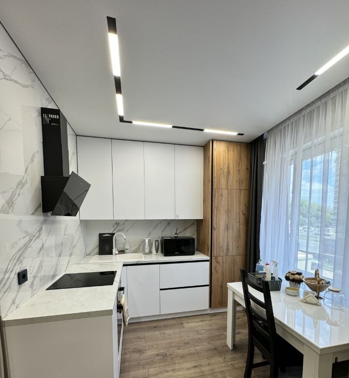 сдается уютная квартира на долгий срок платежеспособному и чистоплотному арендатору без детей и животных. есть вся техника и мебель, в т.ч. кондиционер, смарт тв самсунг, духовой шкаф, плита, свч, холодильник, морозильник, диван повышенной комфортности 160 см и углубленной атаманкой и более глубокими сидениями. есть доп. спальное место в виде кресла кровати. развитая инфраструктура, все рядом, остановки общ. транспорта в 3 минутах, до центра аэропорта 20 мин. собственник. оплата первый, последний месяц залог 30 тыс.