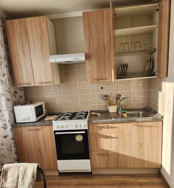 квартира расположена на третьем этаже.общая площадь составляет 33.5 кв. м.удобная транспортная развязка, возможно доехать до любой точки города.рядом очень много магазинов магнит, пятерочка, победа, чижик, фикспрайс, магнит косметикв квартире сделан косметический ремонт. на кухне есть все необходимое холодильник, газовая плита с духовкой, микроволновая печь, необходимая кухонная утварьв комнате есть раскладной диван, большой шкафкупе, кондиционер.санузел совмещенный, оборудован ванной, имеется стиральная машина. аренда оформляется напрямую от собственника, без комиссий. залог и предоплата обсуждаются индивидуально. квартира идеально подходит для одногодвух человек.