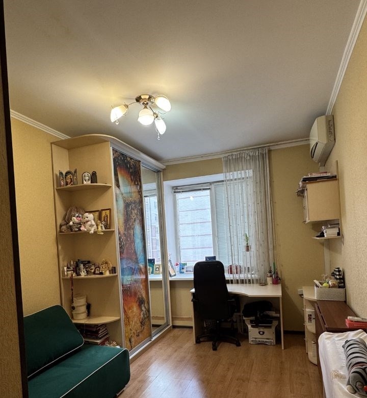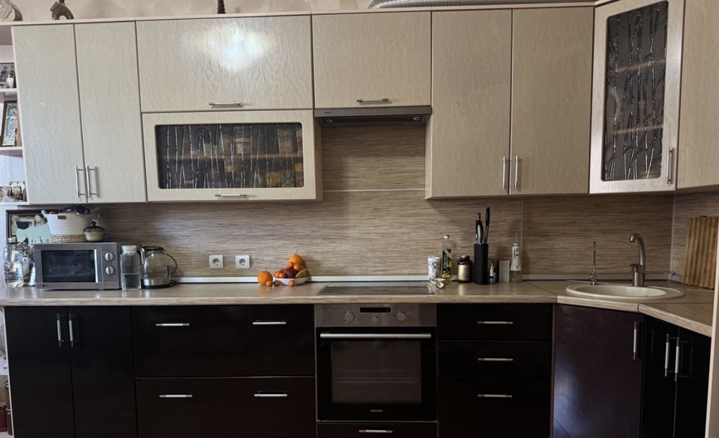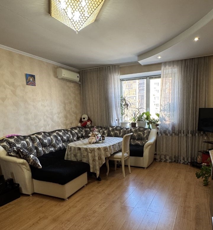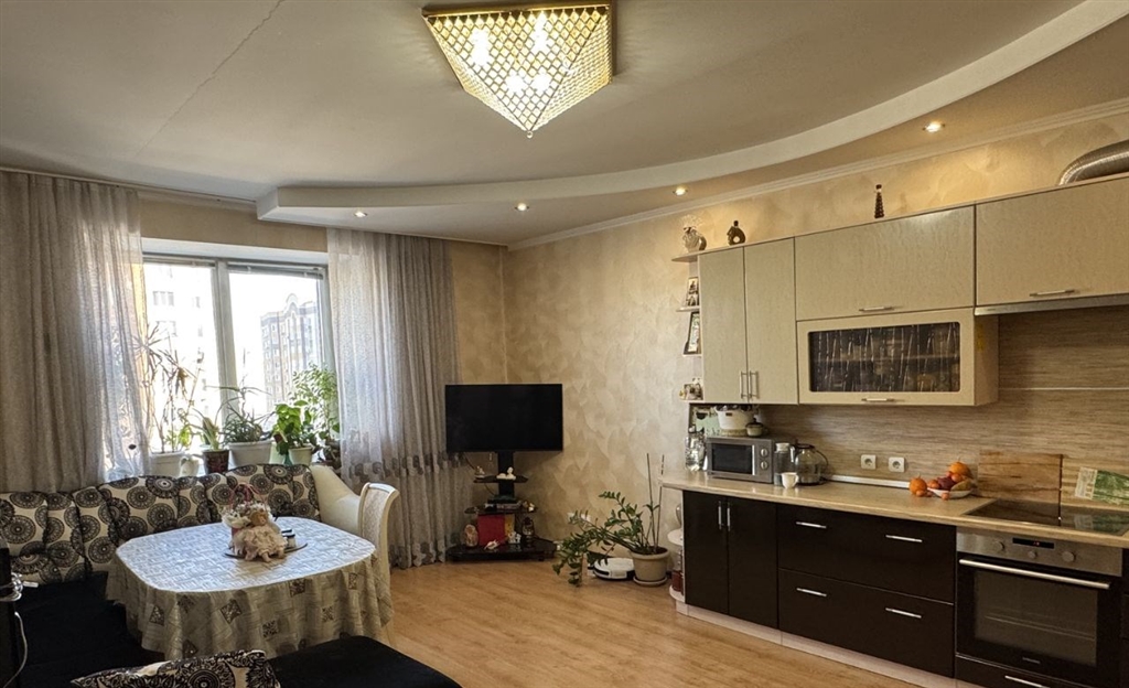 невероятно светлая и просторная квартира почти вся техника и мебель остается, можно заезжать и житьочень просторная кухня студия, поэтому получается 2 отдельные комнаты как трешка.окна выходят во двор и на стоянку, что не создают шум, есть балкон, приятные соседи, рядом вся инфраструктура садик и 107 гимназия в 5ти минутах. отличная входная группа, закрытый двор и стоянка под шлагбаумомторг уместен