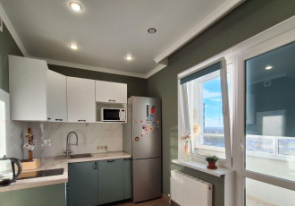 продается от собствеенника видовая однокомнатная квартира в современном жк, построенном в 2017 году.квартира с качественным евроремонтом в светлых тонах, с встроенной техникой остается, санузел совмещенный. в шаговой доступности школы, детские сады...